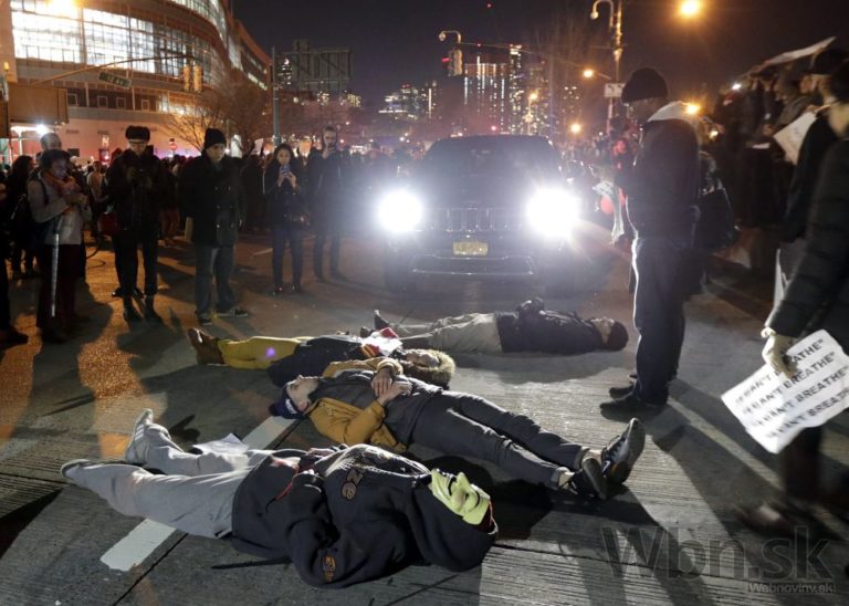 Prevažne pokojné protesty vypukli už v stredu večer na Manhattane vrátane Grand Central Terminal, Times Square a pri Rockefeller Center po tom, čo panel oslobodil policajta Daniela Pantalea v súvislosti s júlovým zabitím Erica Garnera.