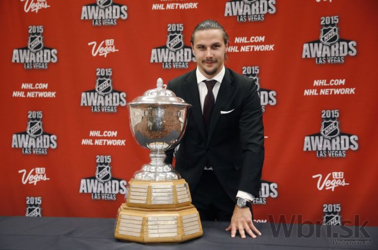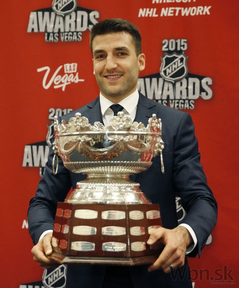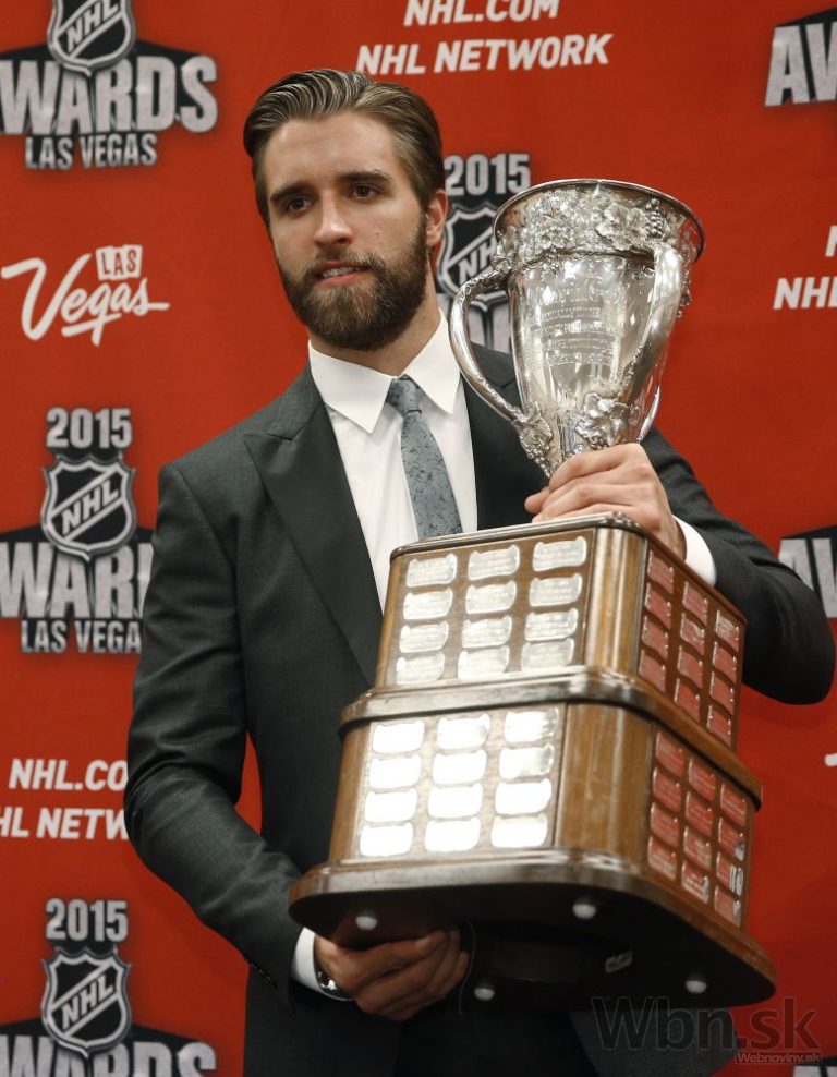 Erik Karlsson z Ottawa Senators získal v individuálnom oceňovaní NHL Norrisovu trofej za najlepšieho obrancu. Las Vegas, 24. júna 2015. Foto: SITA/AP