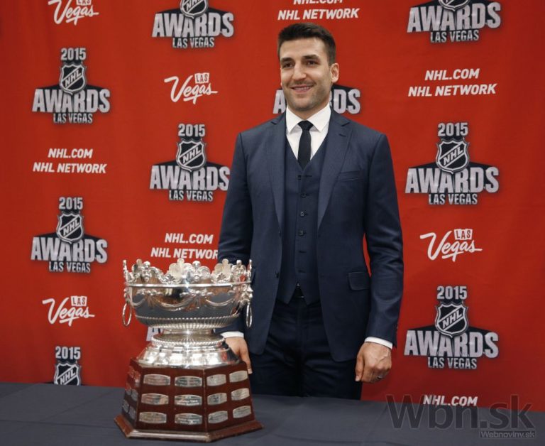 Patrice Bergeron z Boston Bruins získal v individuálnom oceňovaní NHL Selkeho trofej za najlepšieho brániaceho útočníka. Las Vegas, 24. júna 2015. Foto: SITA/AP
