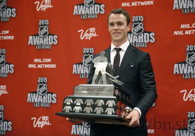 Jonathan Toews z Chicago Blackhawks získal v individuálnom oceňovaní Mark Messier Leadership Award za svoje vodcovské schopnosti. Las Vegas, 24. júna 2015. Foto: SITA/AP