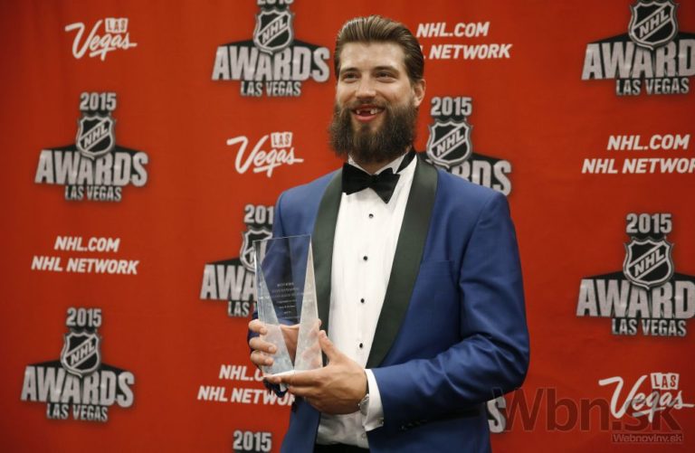 Devan Dubnyk z Minnesoty získal v individuálnom oceňovaní Bill Masterton Memorial trophy za vytrvalosť, športový prístup a oddanosť hokeju. Las Vegas, 24. júna 2015. Foto: SITA/AP