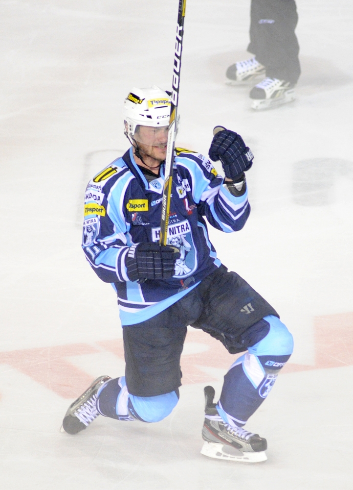 Dušan Milo z HK Nitra počas 6. zápasu finále slovenskej hokejovej Tipsport extraligy 2013/2014 medzi HK Nitra - HC Košice. Nitra, 19. apríl 2014. Foto: SITA/Martin Havran