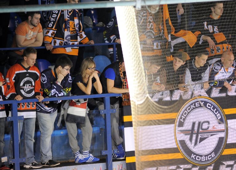 Fanúšikovia HC Košice v závere 6. zápasu finále slovenskej hokejovej Tipsport extraligy 2013/2014 medzi HK Nitra - HC Košice. Nitra, 19. apríl 2014. Foto: SITA/Martin Havran