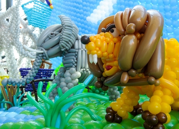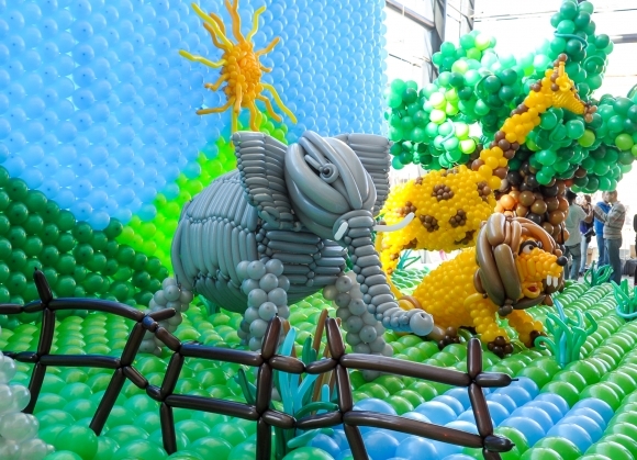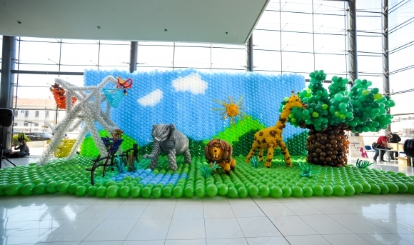 Otvorenie výstavy Balónový svet v Galérii Mlyny Nitra spojené so zápisom do Knihy slovenských rekordov. Balónová 3D výstava má dĺžku 13,85 m, hĺbku 6,3m, výšku 5,5m a obsahuje 13 102 ks balónov. Foto: SITA/Martin Havran