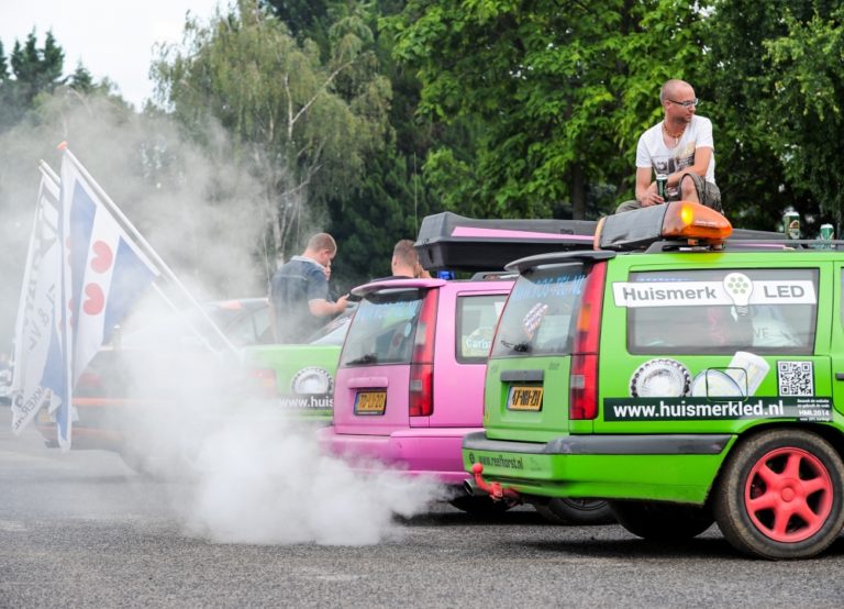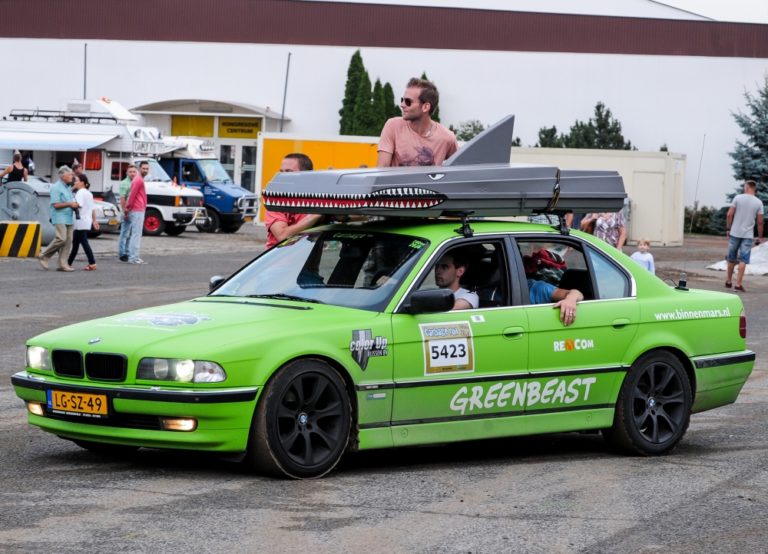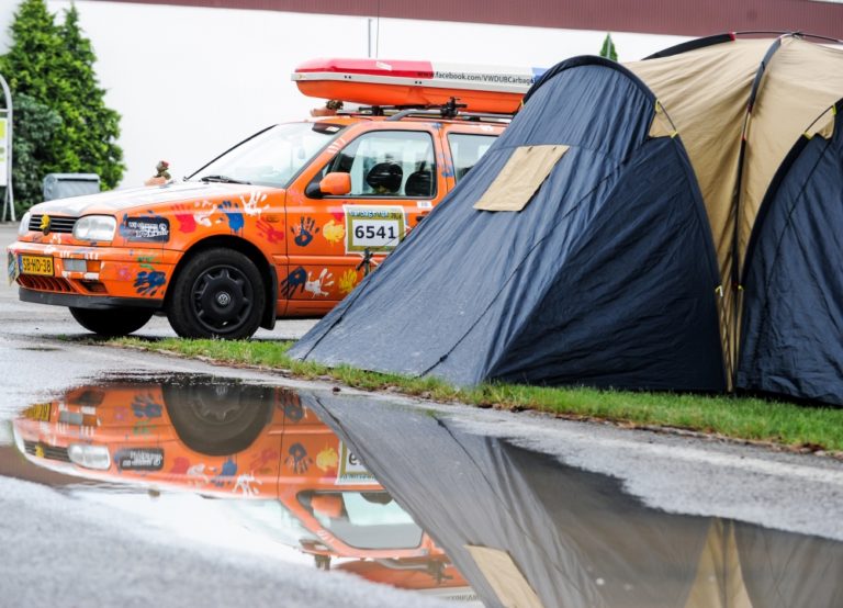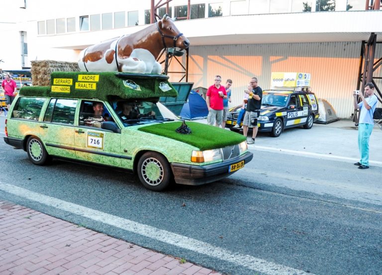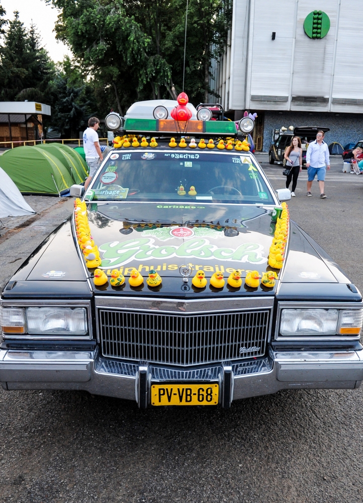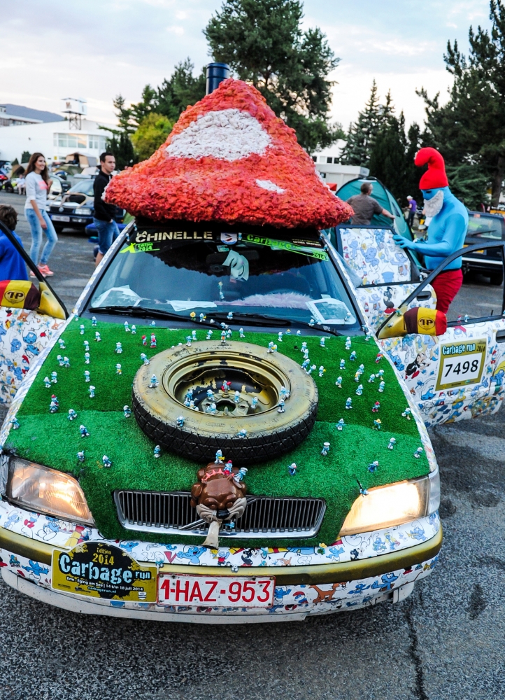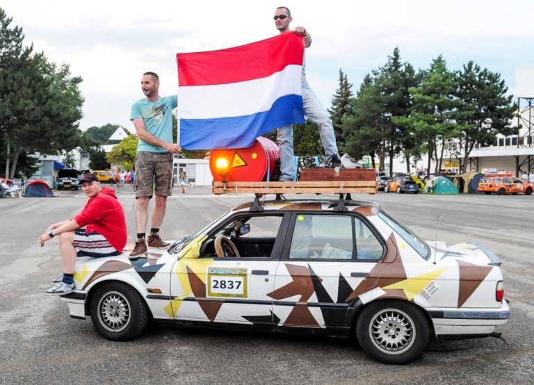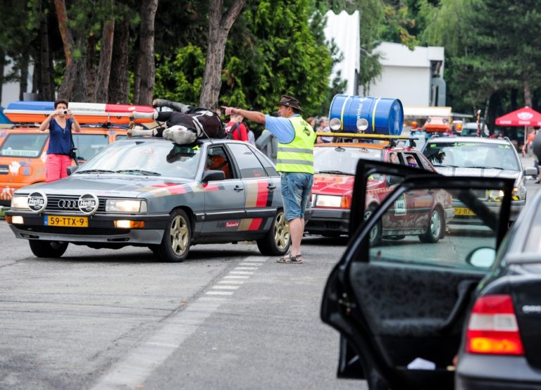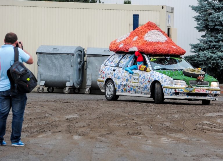 Účastníci podujatia Cargabe Run 2014. Päťdňové preteky smerujú z Holandska cez Nemecko, Poľsko, Ukrajinu so zastávkou v Nitre a s cieľom v Nemecku. Zúčastnené autá musia mať menšiu hodnotu ako 500 eur. Nitra, 17. júl 2014. Foto: SITA/Martin Havran