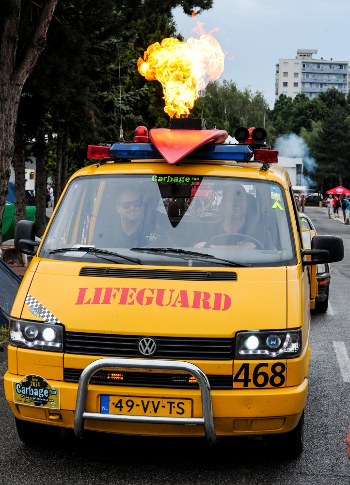 Účastníci podujatia Cargabe Run 2014. Päťdňové preteky smerujú z Holandska cez Nemecko, Poľsko, Ukrajinu so zastávkou v Nitre a s cieľom v Nemecku. Zúčastnené autá musia mať menšiu hodnotu ako 500 eur. Nitra, 17. júl 2014.