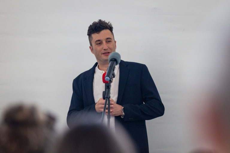 Dekan Fakulty architektúry a dizajnu STU Branislav Puškár počas podujatia Noc architektúry a dizajnu v priestoroch Fakulty architektúry a dizajnu STU v Bratislave. Bratislava, 22. jún 2023. Foto: SITA/Jana Birošová