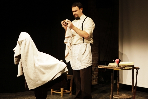 Herec Mário Zeumer počas predstavenia Leonardo (monodráma) v Divadle Akadémie umení počas podujatia Noc divadiel. Foto: SITA/Ján Viazanička