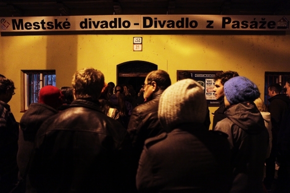 Návštevníci vchádzajú do Mestského divadla - Divadla z Pasáže počas podujatia Noc divadiel. Foto: SITA/Ján Viazanička