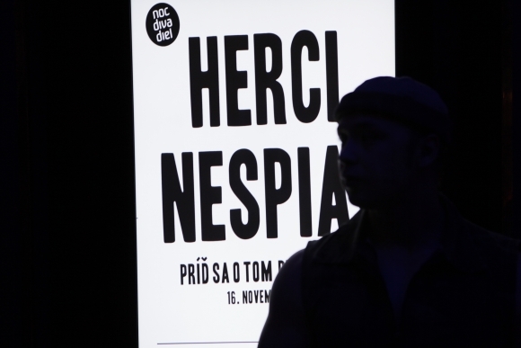 Návštevník podujatia Noc divadiel vo foyer Štátnej opery v Banskej Bystrici. Foto: SITA/Ján Viazanička