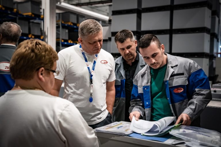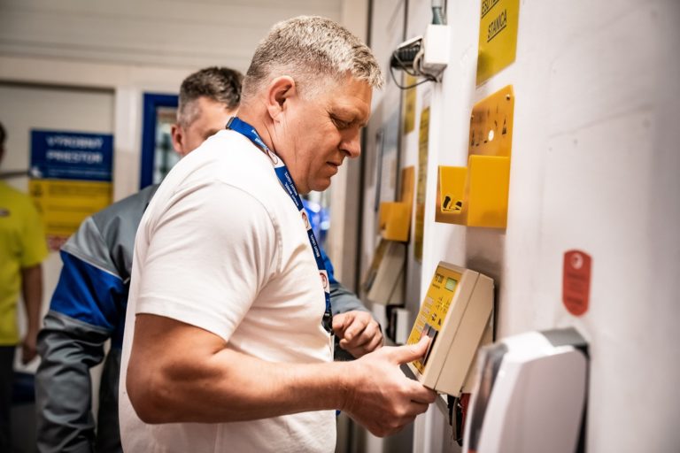 Premiér SR Robert Fico si odpracoval nočnú zmenu v noci z 30. apríla na 1. mája v závode ZKW Slovakia v Krušovciach. Premiér tak chcel symbolicky aj reálne na Sviatok práce podporiť všetkých, ktorí pracujú v trojzmenných nepretržitých prevádzkach a podporujú tak svoje rodiny aj celú spoločnosť. Bratislava, 1. máj 2024. Foto: archívne, SITA/Úrad vlády SR