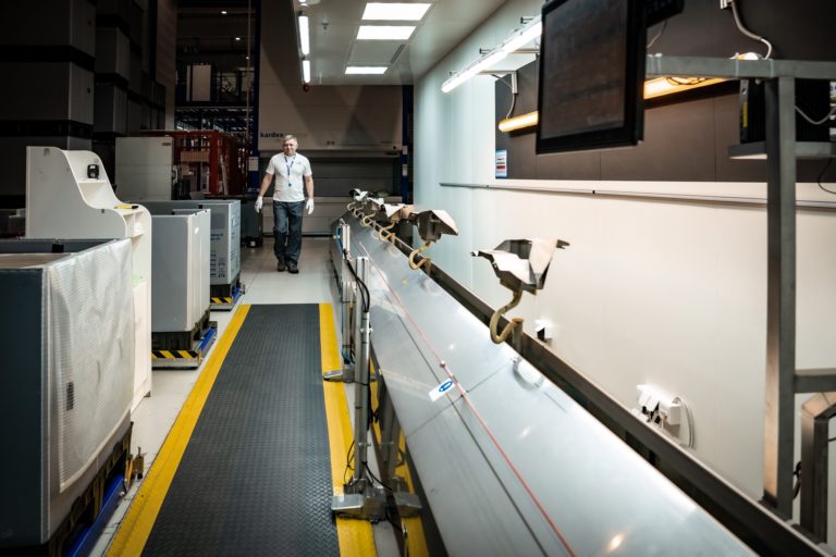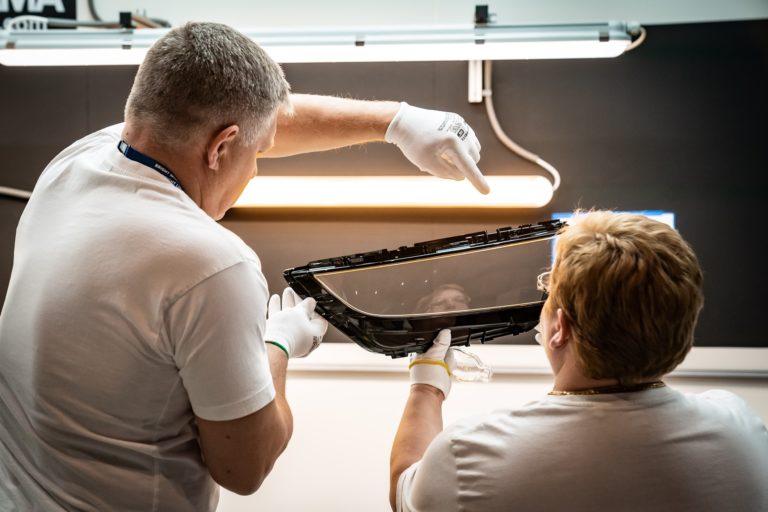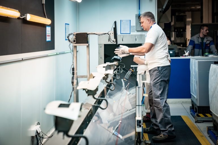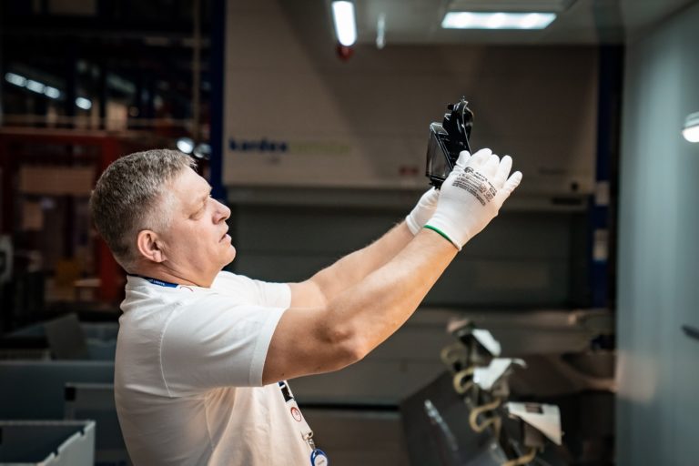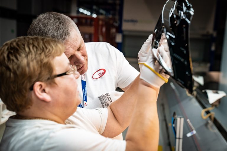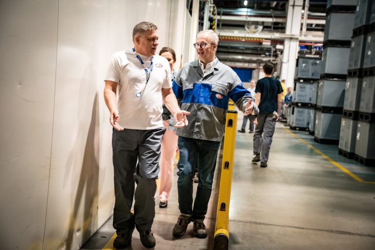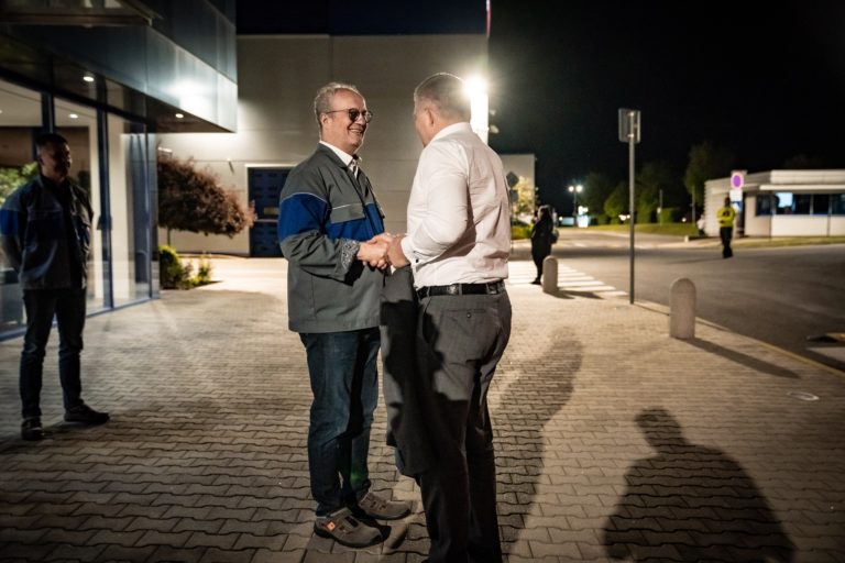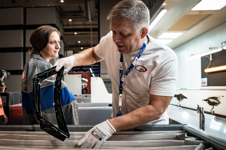 Premiér SR Robert Fico (v pozadí) si odpracoval nočnú zmenu v noci z 30. apríla na 1. mája v závode ZKW Slovakia v Krušovciach. Premiér tak chcel symbolicky aj reálne na Sviatok práce podporiť všetkých, ktorí pracujú v trojzmenných nepretržitých prevádzkach a podporujú tak svoje rodiny aj celú spoločnosť. Bratislava, 1. máj 2024. Foto: SITA/Úrad vlády SR