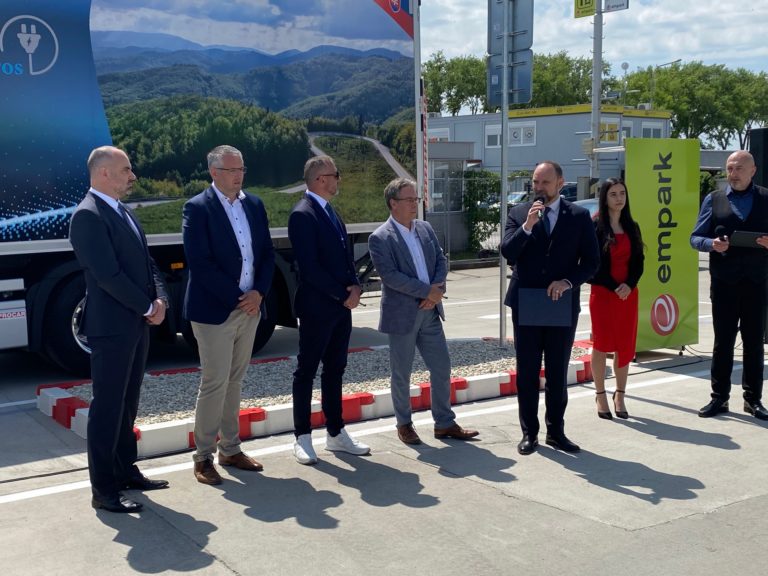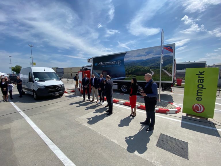 ZSE Drive otvoril prvú verejnú nabíjaciu lokality pre nákladnú automobilovú dopravu. Sídli v areáli EMPARK v Trnave. Foto: SITA/ZSE