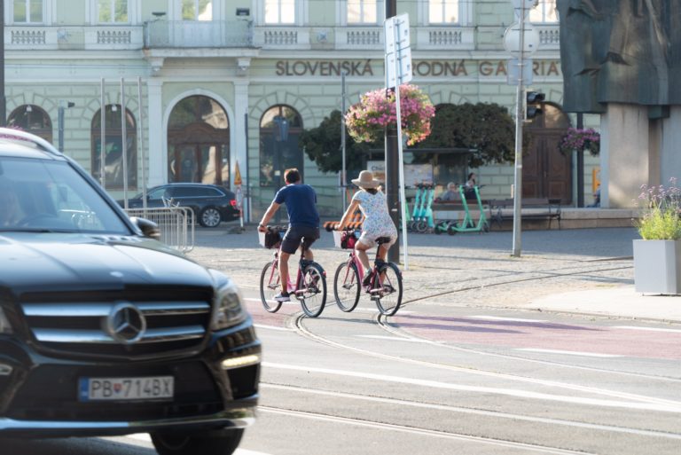 Nové cyklopruhy na Vajanského nábreží v Bratislave. Foto: www.facebook.com.