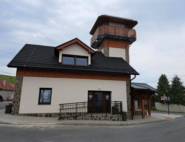 Prestavaná hasičská zbrojnica na múzeum a informačné centrum s vyhliadkovou vežou v Liptovskej Tepličke. Liptovská Teplička. 25. júl 2023. Foto: SITA/Mária Frisová.