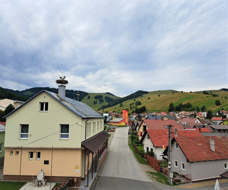Výhľad z vyhliadkovej veže v rámci múzea v Liptovskej Tepličke v budove bývalej hasičskej zbrojnice. Liptovská Teplička. 25. júl 2023. Foto: SITA/Mária Frisová.