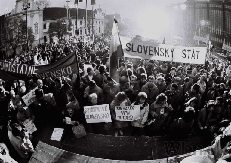 Verejné zhromaždenie v Bratislave počas novembrových dní roka 1989. Foto: Ján Lörincz/SITA