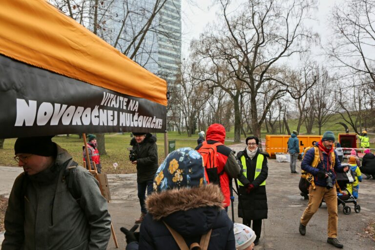 Atmosféra počas novoročného mulčovania vianočných stromčekov v Sade Janka Kráľa v Bratislave. Bratislava, 18. január 2025. Foto: SITA/Tomáš Susko
