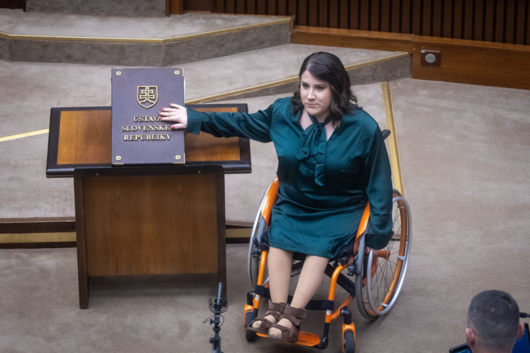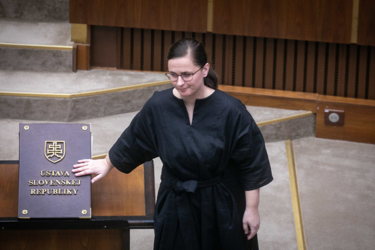 Nezaradená poslankyňa parlamentu Martina Holečková skladá poslanecký sľub počas ustanovujúcej schôdze Národnej rady SR. Foto: archívne, SITA/Diana Černák.