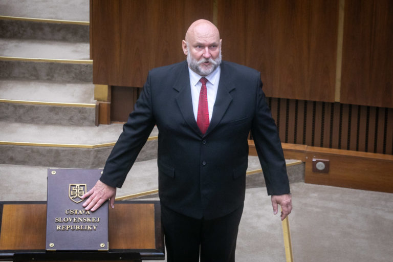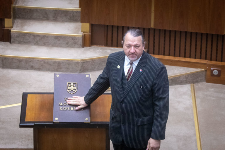 Poslanec parlamentu za stranu Slovenská národná strana (SNS) Rudolf Huliak skladá poslanecký sľub počas ustanovujúcej schôdze Národnej rady SR. Bratislava, 25. október 2023. Foto: archívne, SITA/Diana Černak.