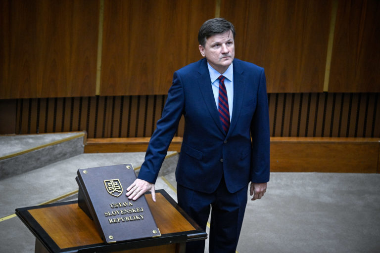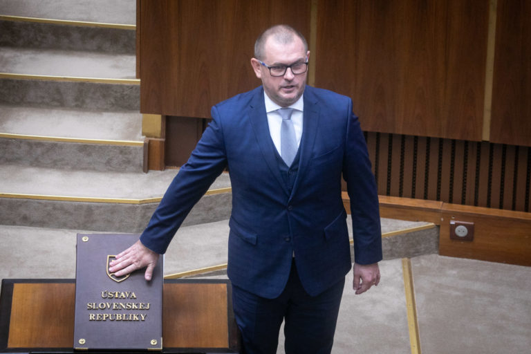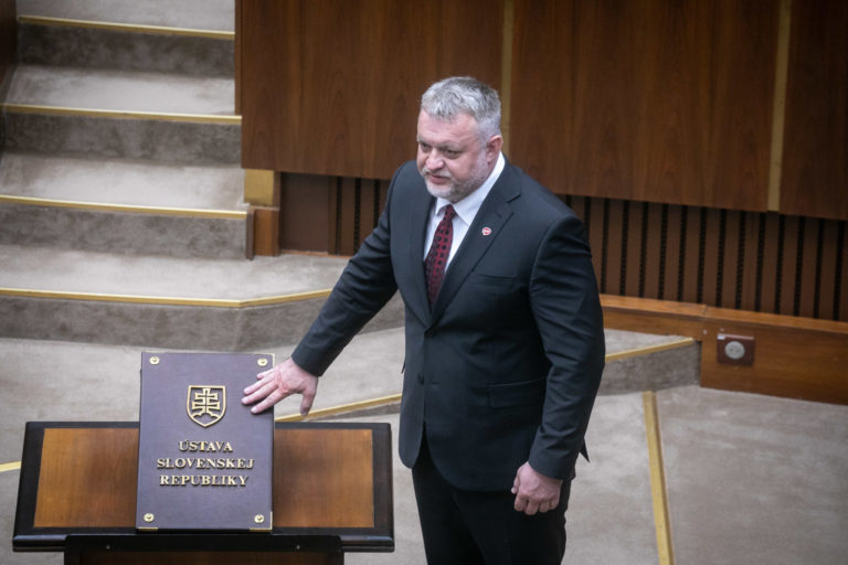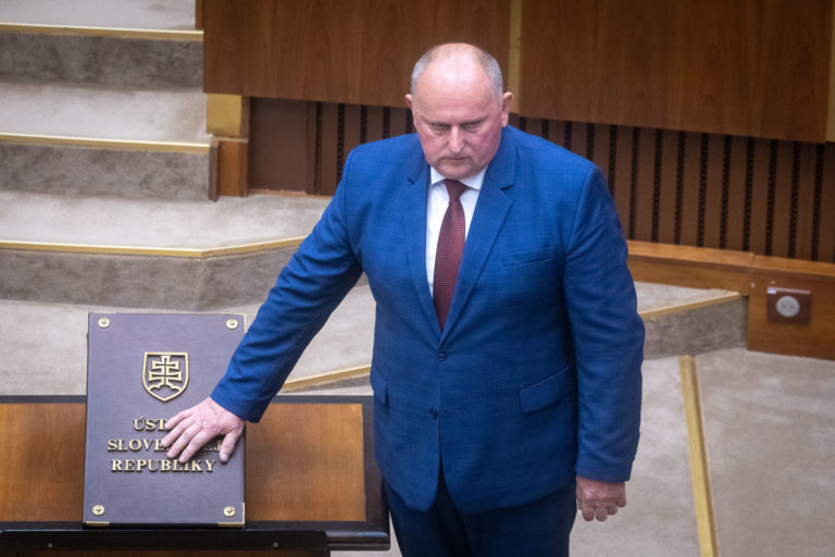 Poslanec parlamentu za stranu Smer-SSD Robert Kaliňák skladá poslanecký sľub počas ustanovujúcej schôdze Národnej rady SR. Bratislava, 25. október 2023. Foto: SITA/Diana Černak