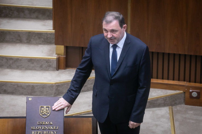 Poslanec parlamentu za stranu Smer - SSD Vladimír Faič skladá poslanecký sľub počas ustanovujúcej schôdze Národnej rady SR. Bratislava, 25. október 2023. Foto: SITA/Diana Černak