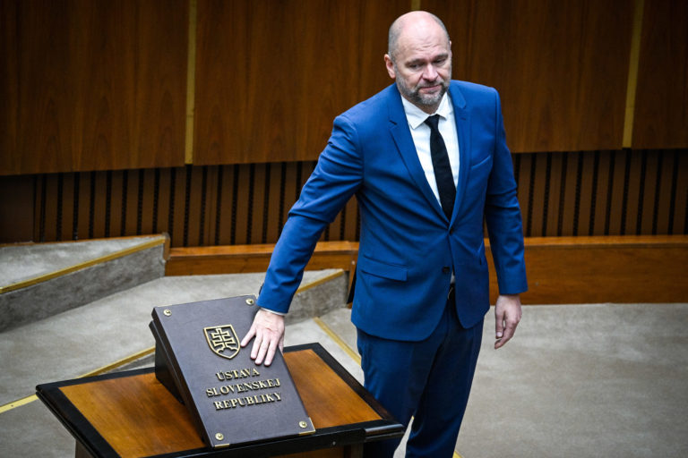 Poslanec parlamentu za Kresťanskodemokratické hnutie (KDH) František Majerský skladá poslanecký sľub počas ustanovujúcej schôdze Národnej rady SR. Bratislava, 25. október 2023. Foto: archívne, SITA/Diana Černak.