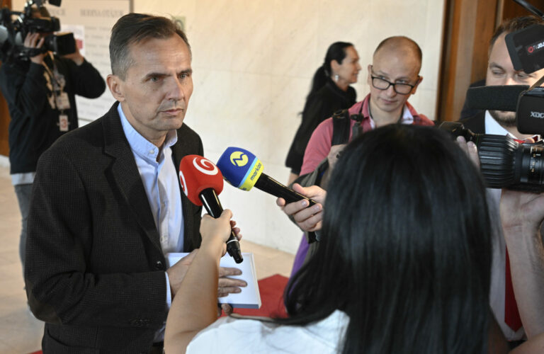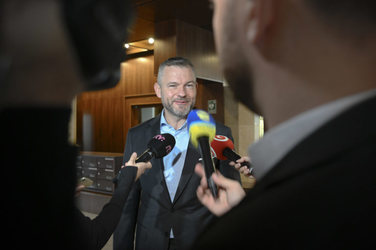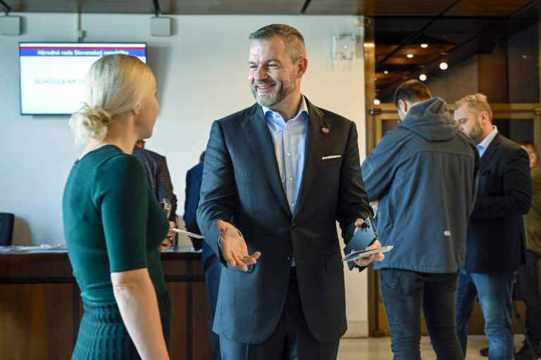 Zvolený poslanec parlamentu za stranu Hlas - sociálna demokracia a nominovaný predseda NR SR Peter Pellegrini počas brífingu s novinármi pred skúškou digitálneho kongresového systému Národnej rady (NR) SR za účasti zvolených poslancov NR SR. Bratislava, 24. október 2023. Foto: SITA/Milan Illík