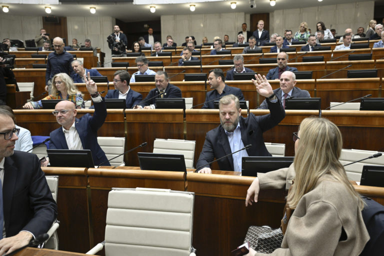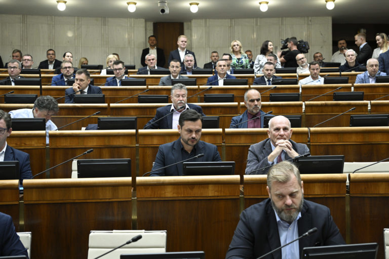 Atmosféra v rokovacej sále parlamentu počas skúšky digitálneho kongresového systému Národnej rady (NR) SR za účasti zvolených poslancov NR SR. Bratislava, 24. október 2023. Foto: SITA/Milan Illík