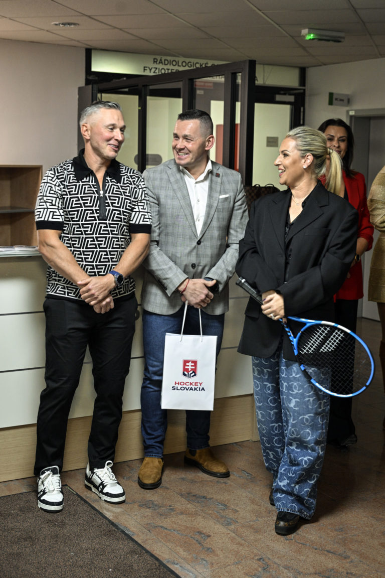 Sprava : Historicky najúspešnejšia slovenská tenistka a majsterka sveta, bývalá pacientka Sportclinic Dominika Cibulková, bývalý hokejista a generálny manažer Slovenského zvätu ľadového hokeja (SZĽH) Miroslav Lažo počas predstavenia nového medicínskeho konceptu Nemocnice Medissimo v bratislavskej Petržalke. Bratislava, 20. február 2024. Foto: SITA/Milan Illík