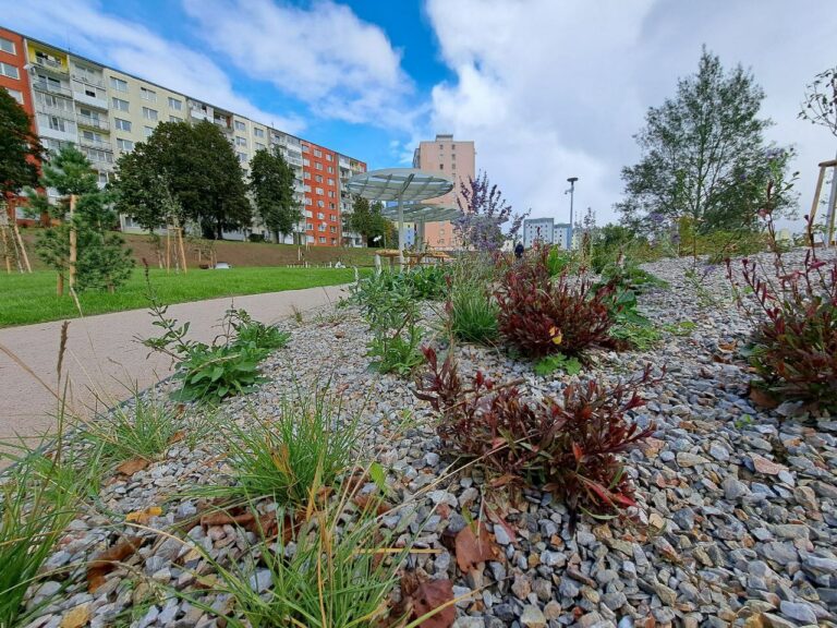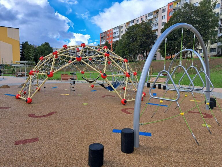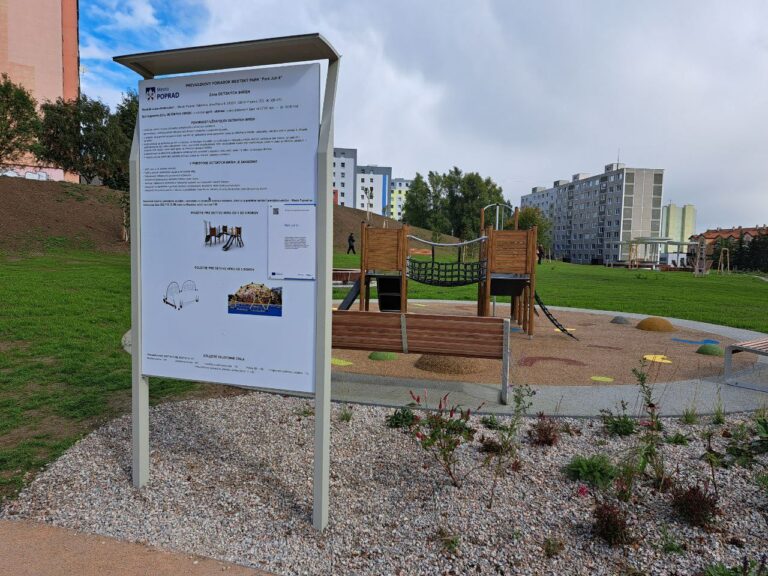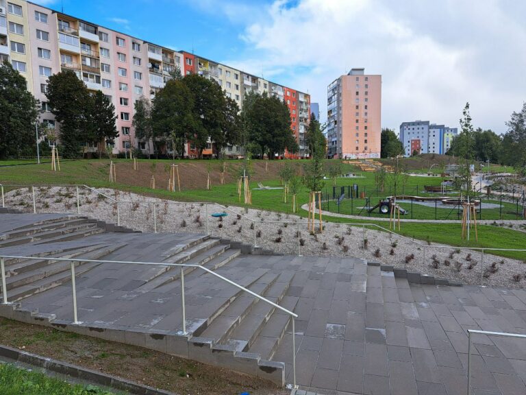 Pohľad na nový park v Poprade, na ktorý získalo mesto 1,8 milióna eur z eurofondov v rámci opatrení MIRRI. Foto: SITA/Mária Frisová