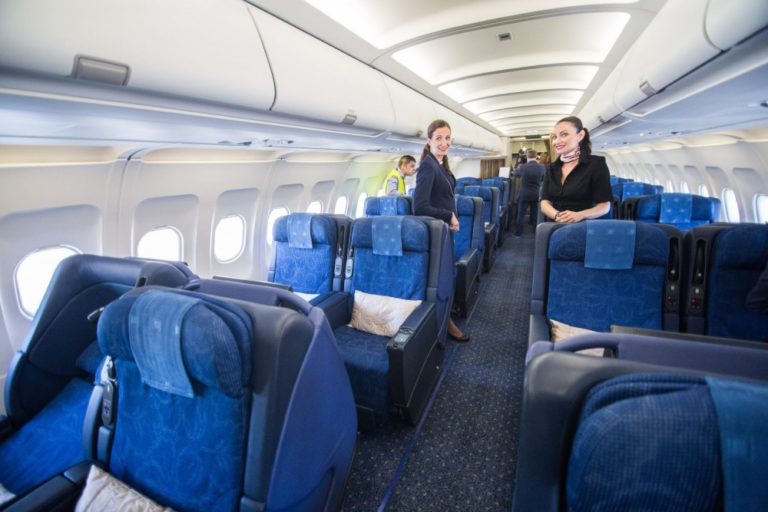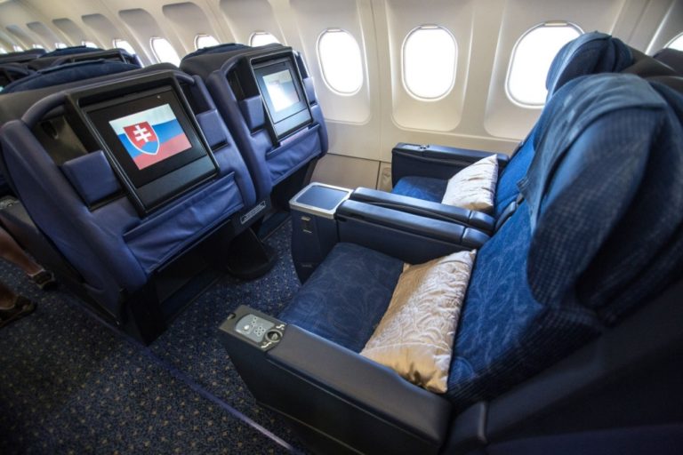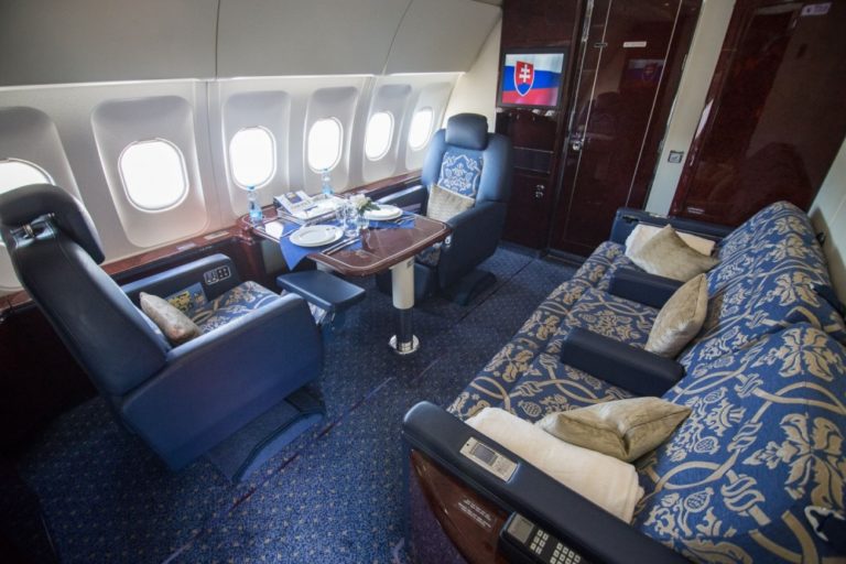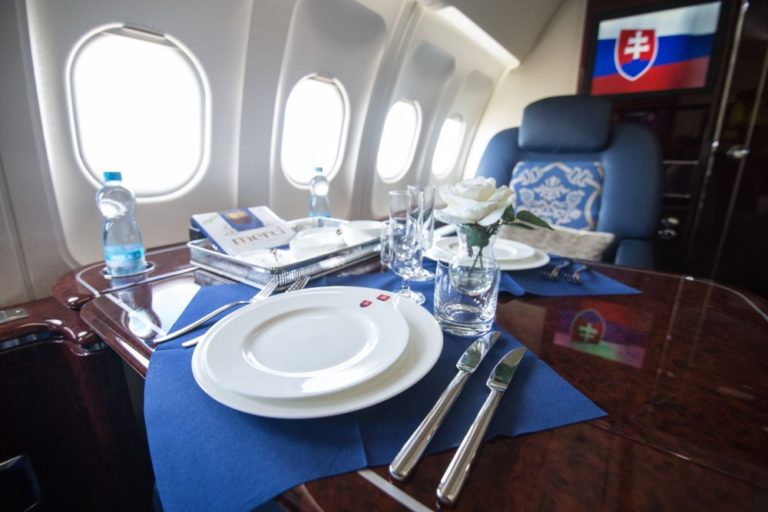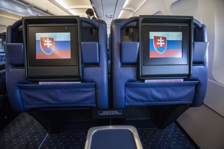 Pohľad do interiéru vládneho špeciálu Airbus A319 počas prehliadky lietadla po prílete z Ostravy. Bratislava, 14. jún 2016. Foto: SITA/Marko Erd