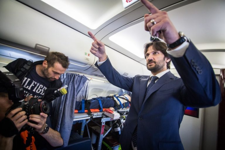 Minister vnútra Robert Kaliňák počas prehliadky vládneho špeciálu Airbus A319 po prílete z Ostravy na bratislavské letisko. Bratislava, 14. jún 2016. Foto: SITA/Marko Erd