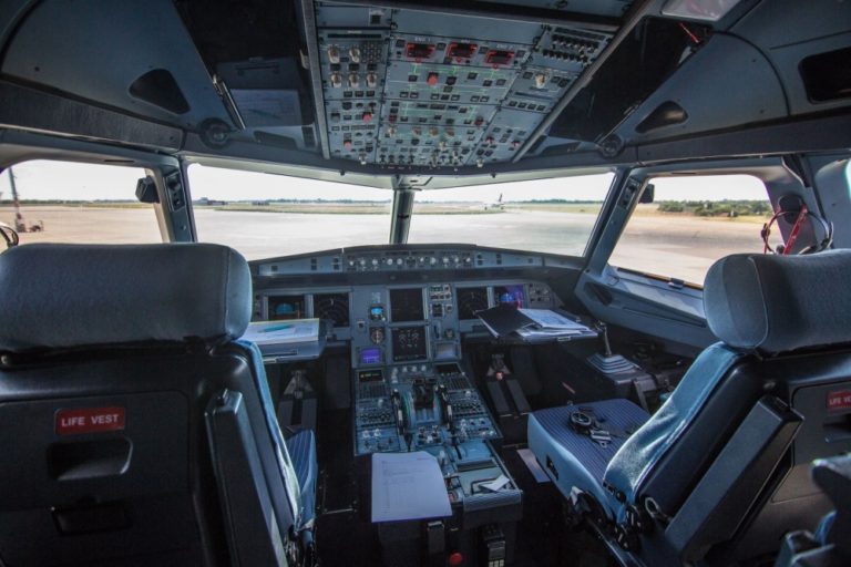 Pohľad do kokpitu vo vládnom špeciáli Airbus A319 počas prehliadky lietadla. Bratislava, 14. jún 2016. Foto: SITA/Marko Erd