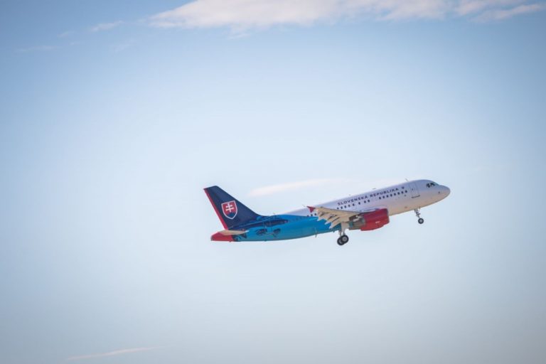 Vládny špeciál Airbus A319 počas príletu na Letisko M. R. Štefánika. Bratislava Foto: SITA/Marko Erd