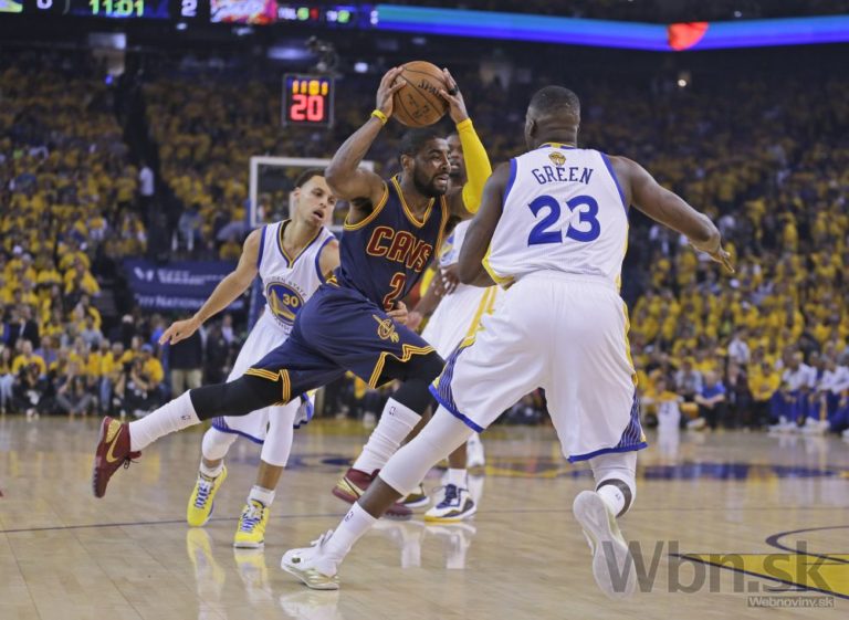 Draymond Green (23) z Golden State bráni Kyrieho Irvinga (2) z Clevelandu počas prvého finálového zápasu NBA, v ktorom Warriors zvíťazili 108:100 po predĺžení. Oakland, 4. jún 2015. Foto: SITA/AP