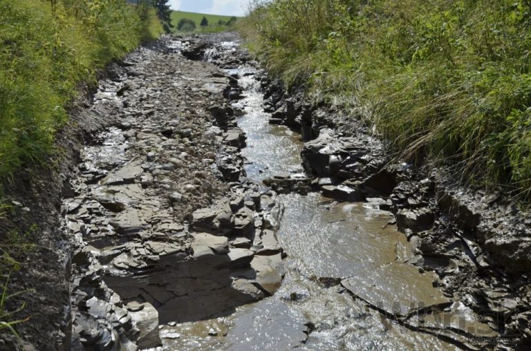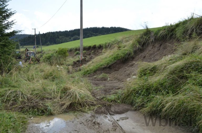 Stav poľnej cesty po prívalovej vlne. Prívalová vlna sa v piatok večer prehnala obcou Vlková. V obci vyhlásili tretí stupeň povodňovej aktivity. Vlková, 26.júl 2014. Foto: SITA/Radoslav Maťaš