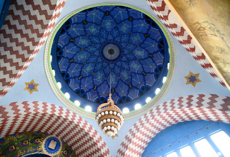 Interiér Národnej kultúrnej pamiatky trenčianskej synagógy po niekoľkomesačných rekonštrukčných prácach na výmaľbe, novej podlahe, dverách, oknách a vyriešení zlej akustiky. Práce na kompletnej rekonštrukcii by mali byť hotové do roku 2026, kedy sa mesto Trenčín stane európskym hlavným mestom kultúry. Trenčín, 18. apríl 2024. Foto: SITA/Tomáš Somr.