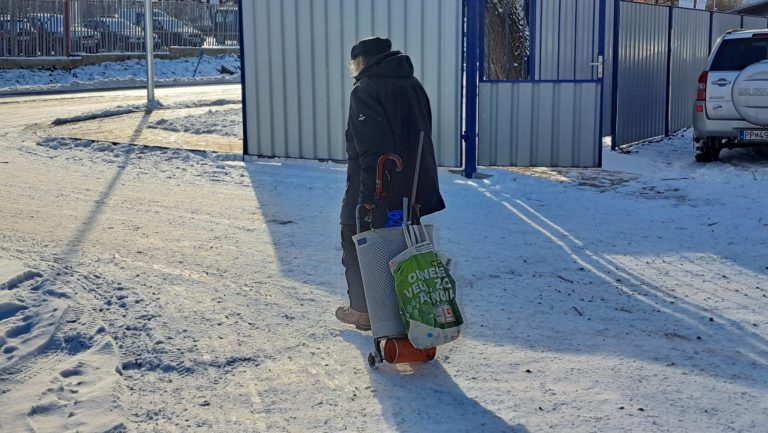 Jeden z klientov nocľahárne pre ľudí bez domova na Levočskej ulici v Poprade pri odchode z areálu. Poprad, 29. november 2023. Foto: SITA/Mária Frisová