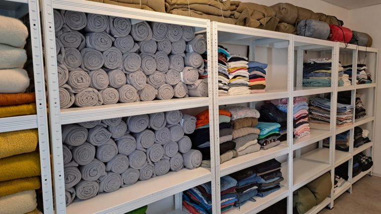 Sklad s oblečením a posteľnou bielizňou pre ľudí bez domova v zrekonštruovanej nocľahárni na Levočskej ulici v Poprade. Poprad, 29. november 2023. Foto: SITA/Mária Frisová