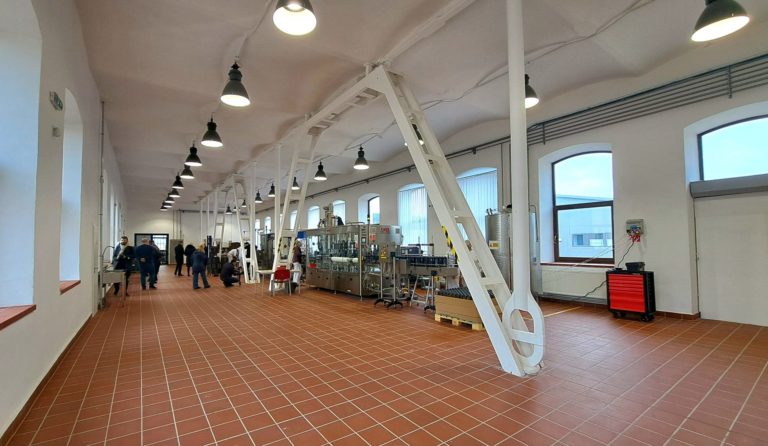 Zrekonštruovaný interiér hlavnej budovy areálu bývalej fabriky na spracovanie ľanu v Kežmarku, národnej kultúrnej pamiatky, známej ako Pradiareň, ktorá patrí výrobcovi liehovín, spoločnosti Karloff. Kežmarok, 23. február 2024. Foto: SITA/Mária Frisová