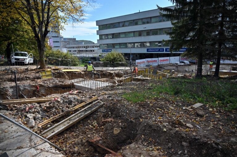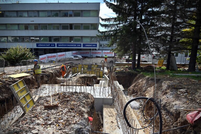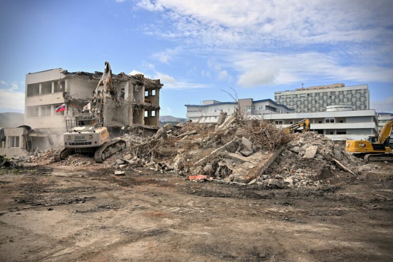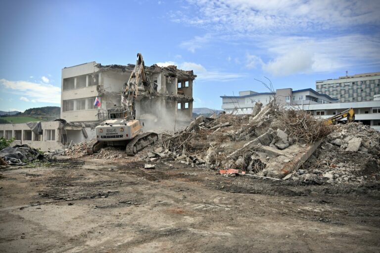 Fakultná nemocnica s poliklinikou F. D. Roosevelta v Banskej Bystrici počas búracích prác v rámci projektu výstavby novej nemocnice v priestoroch súčasného areálu financovaného z Plánu obnovy a odolnosti SR. Foto: archívne, SITA/Jakub Julény