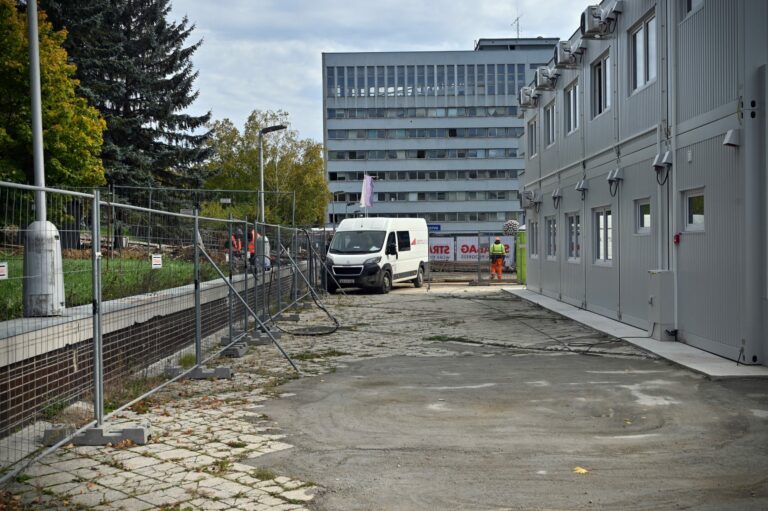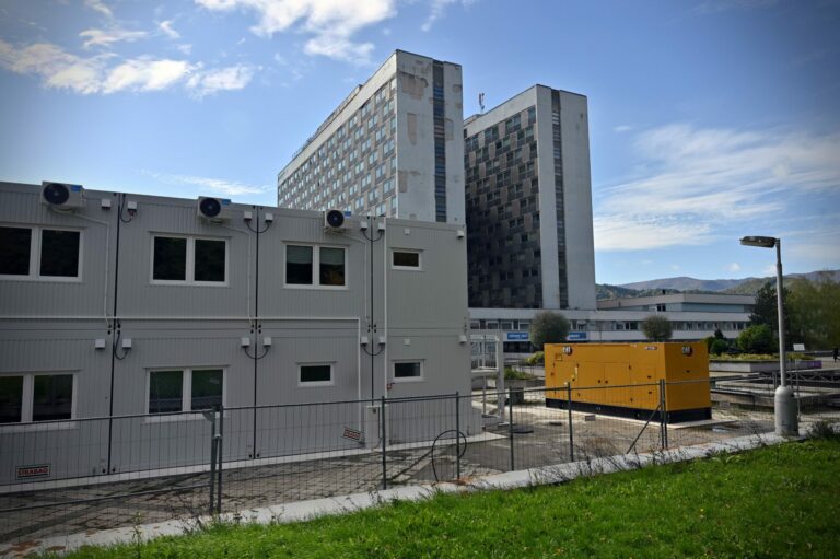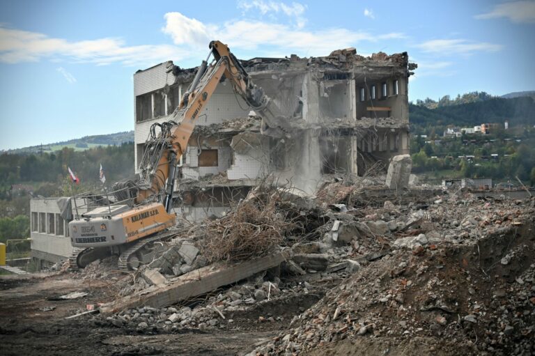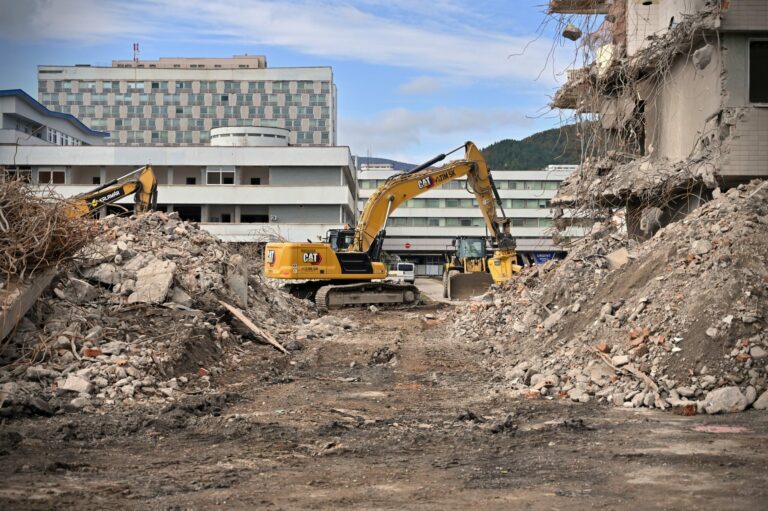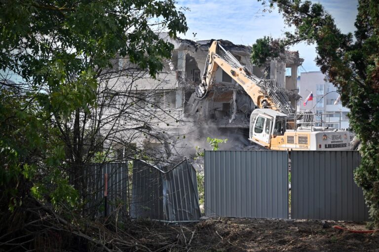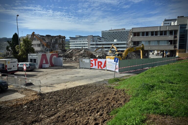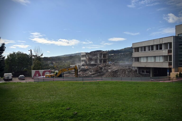 Fakultná nemocnica s poliklinikou F. D. Roosevelta v Banskej Bystrici počas búracích prác v rámci projektu výstavby novej nemocnice v priestoroch súčasného areálu financovaného z Plánu obnovy a odolnosti SR. Banská Bystrica, 14. október 2024. Foto: SITA/Jakub Julény