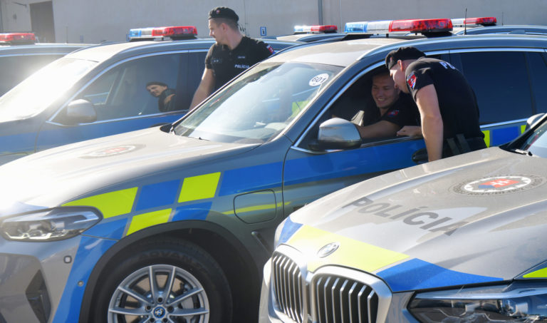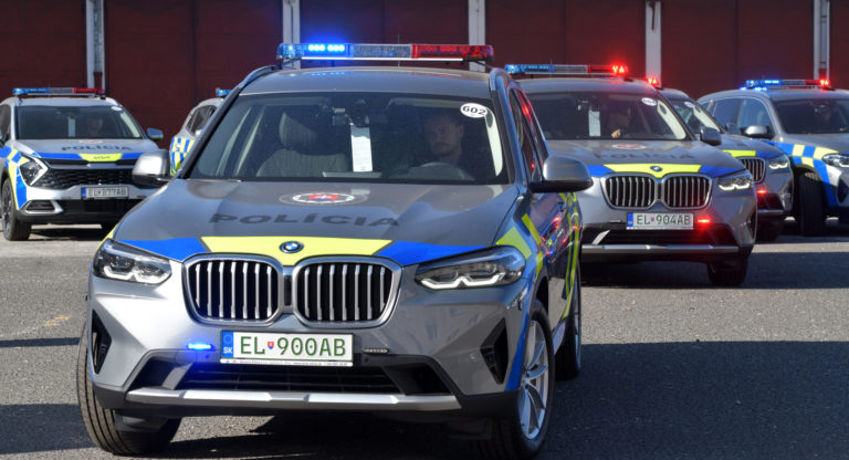 Nové vozidlá SUV Kia Sportage 1,6 TGDI PHEV si prevzalo Prezídium Policajného zboru a SUV BMW X3 x Drive30e PHEV pre Policajný zbor v Banskobystrickom a Bratislavskom kraji. Ekologické vozidlá zakúpilo a prepozdelilo Ministerstvo vnútra SR z Plánu obnovy a odolnosti SR za účelom plnenia služobných úloh Polície SR. Bratislava, 6. október 2023. Foto: SITA/Ministerstvo vnútra SR