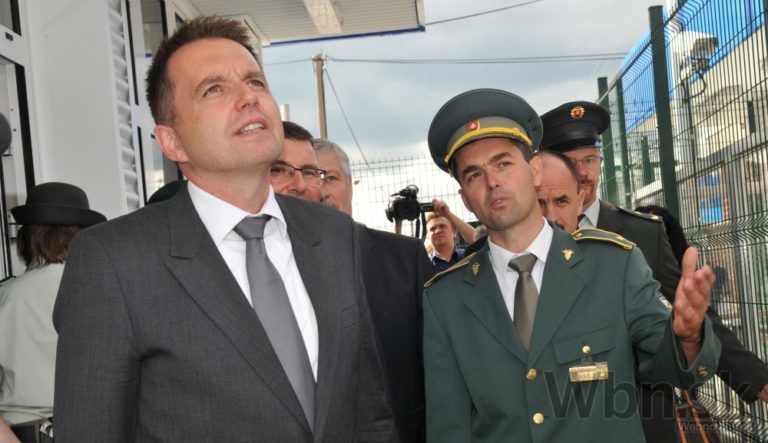 Zľava: Minister financií Peter Kažimír a vedúci Pobočky colného úradu Veľké Slemence Ľuboš Palacka počas odovzdávania colného hraničného, priechodu Veľké Slemence – Mali Selmenci do prevádzky po rekonštrukcii. Veľké Slemence, 26. september 2014. Foto: SITA/Viktor Zamborský