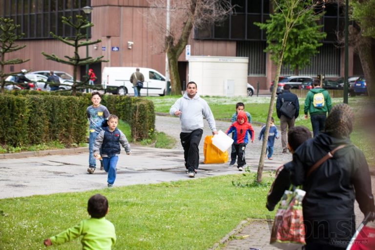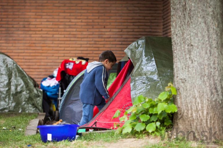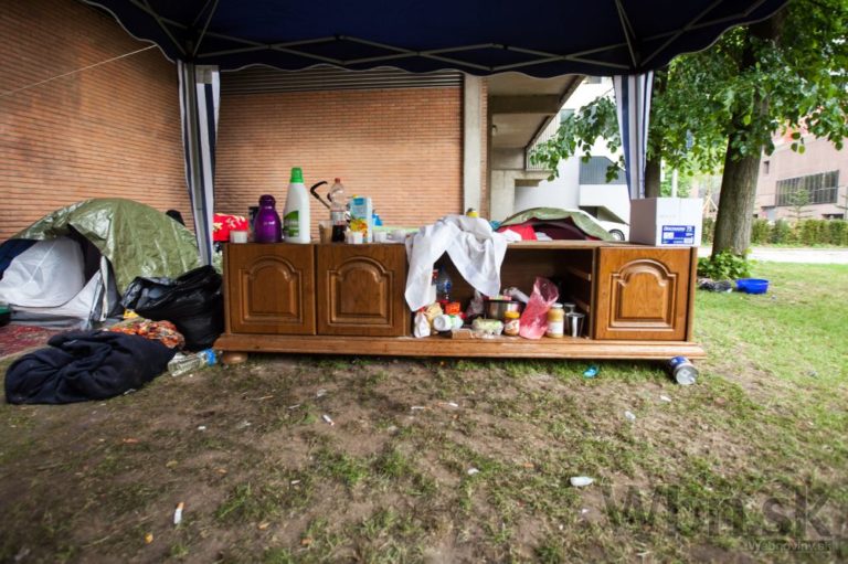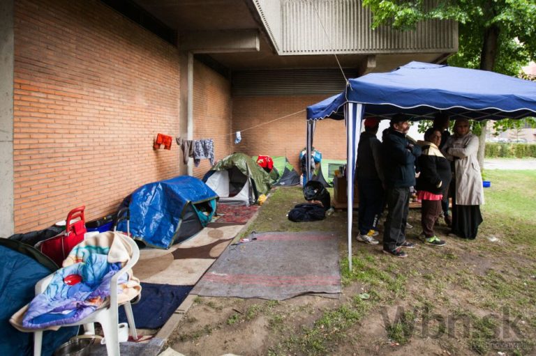 Skupina slovenských Rómov šokovala belgické úrady, keď sa naťahovala do parku v hlavnom meste. Belgické autority prekvapilo, že rodičia a asi 20 detí spí v parku na zemi. Brusel, Belgicko, 19. máj 2015. Foto: SITA/Diana Černáková