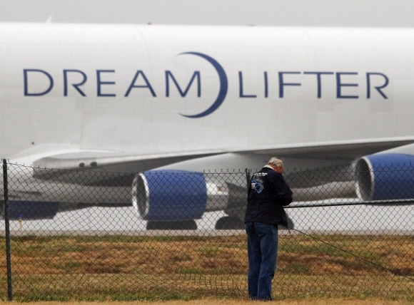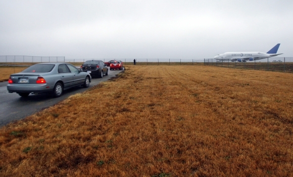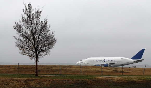 Jedno z najväčších nákladných lietadiel na svete vo štvrtok opustilo letisko v americkom štáte Kansas, kde v stredu omylom pristálo. Jeden zo štyroch strojov Boeing 747 Dreamlifter smeroval z newyorského medzinárodného letiska Johna F. Kennedyho, no namiesto vojenskej základne omylom dosadol na neďalekom provinčnom letisku, ktoré nie je uspôsobené na lietadlá tohto typu. Foto: SITA/AP