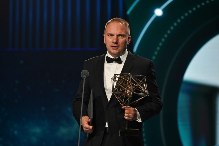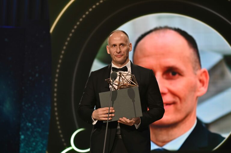 Laureát ocenenia Výnimočná osobnosť vedy na Slovensku, ekonóm Martin Kahanec počas slávnostného vyhlásenia laureátov ocenenia výnimočných vedeckých osobností ESET Science Award v priestoroch Slovenskej filharmónie. Bratislava, 9. október 2025. Foto: SITA/ESET Science Award/Linda Kisková Bohušová