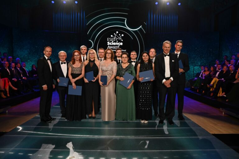 Finalisti ESA po slávnostnom vyhlásení ocenenia výnimočných vedeckých osobností ESET Science Award 2025 v priestoroch Slovenskej filharmónie. Bratislava, 9. október 2025. Foto: SITA/ESET Science Award/Linda Kisková Bohušová