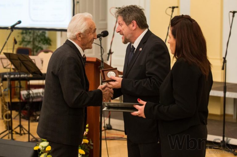 Les Horan (uprostred) jedno zo zachránených židovských detí v 2. sv. vojne počas odovzdávania ocenení Spravodliví medzi národmi. Bratislava, 28. január 2015. Foto: SITA/Jozef Jakubčo
